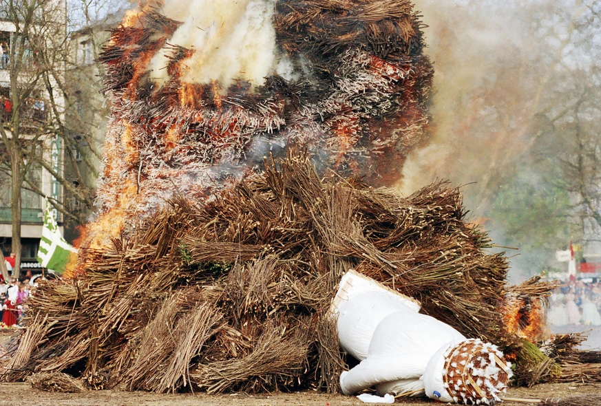 Der Höhepunkt folgt am Abend, wenn der Böögg auf dem Sechseläutenplatz angezündet wird. Tausende Menschen versammeln sich, um das spektakuläre Feuer zu beobachten und gemeinsam das Ende des Winters zu feiern.